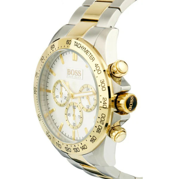 Diseño bisel dorado sobre esfera plateada clara: este modelo Ikon combina una caja de acero inoxidable plateado de 44 mm (≈ 46 mm según algunas fuentes) con bisel chapado en dorado y esfera blanca limpia, generando una presencia elegante y técnica. Integra cronógrafo con tres subesferas (60 s, 60 min, 24 h), taquímetro en el bisel y manecillas luminiscentes en tono dorado. Montado sobre pulsera metálica bicolor (plata y dorado) de 22 mm con cierre deployante, equilibra estética y funcionalidad. Movido por cuarzo preciso, con resistencia al agua de hasta 100 m (10 ATM) y cristal mineral resistente. Incluye 2 años de garantía oficial.
