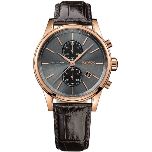 Diseño sofisticado con aire clásico y presencia refinada: este modelo Jet presenta una caja de acero inoxidable chapada en rose-gold de aproximadamente 41–42 mm con apenas 10–12 mm de grosor, acompañado por una esfera gris sunray con detalles en tone rose-gold y dos contadores de cronógrafo elegantemente equilibrados. Su correa de piel grabada tipo croco marrón de 20 mm aporta carácter y ajuste cómodo. Incorpora cronógrafo, ventana de fecha y movimiento de cuarzo de tres manecillas fiable. Con resistencia al agua de hasta 50 m (5 ATM), es una opción versátil, técnica y estilizada para el día a día. Incluye 2 años de garantía oficial.