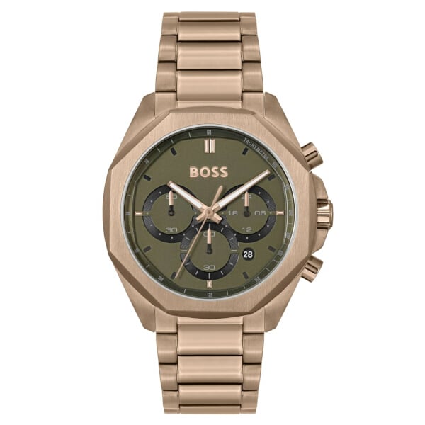 El Reloj Hugo Boss Cloud 1514019 combina elegancia minimalista y estilo urbano con su esfera verde oliva sunray, enmarcada por un bisel octogonal bruñido que realza su carácter contemporáneo. Los índices luminosos y subesferas recurrentes (cronógrafo y fecha) aportan funcionalidad sin perder sobriedad visual. Su pulsera de acero inoxidable en tono beige dorado refuerza el contraste refinado. Ideal para un hombre moderno que busca diseño y precisión. Incluye 2 años de garantía oficial.