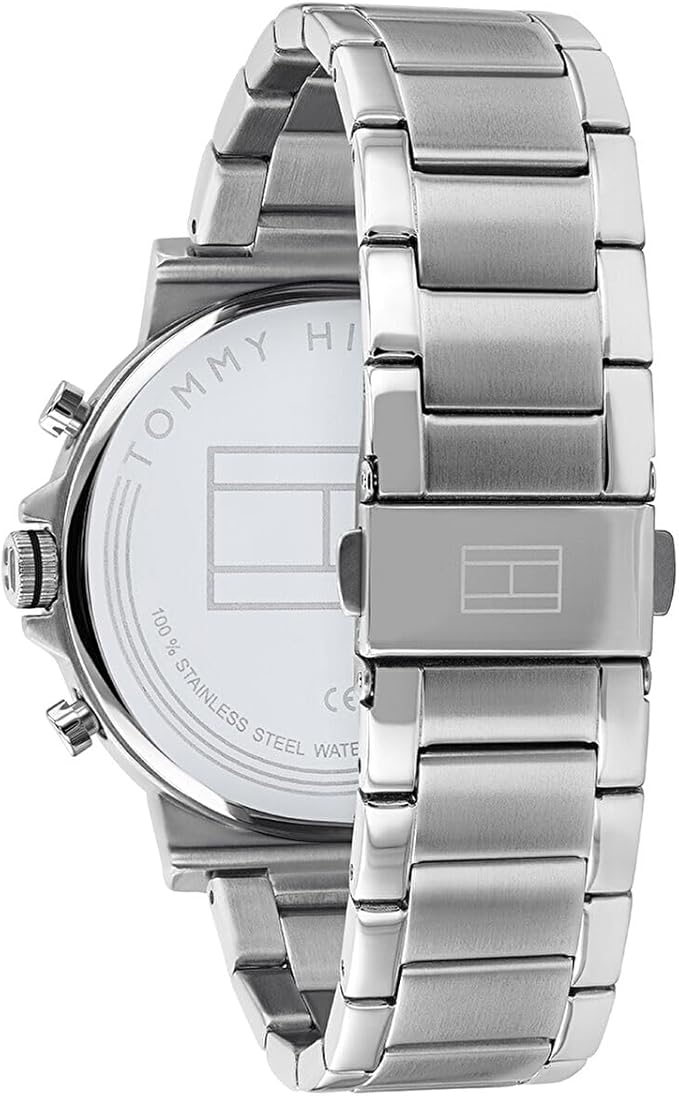 El Tommy Hilfiger Daniel 1710413 ofrece una estética sofisticada en acero plateado con esfera negra sunray que combina numerales árabes e índices luminosos. Su caja de 44 mm y grosor de solo 9.7–11 mm lo hacen equilibrado y masculino, mientras el brazalete de acero con cierre desplegable aporta elegancia y confort. Con funciones de fecha y día de la semana integradas en subesferas analógicas, es un reloj versátil, ideal para un estilo moderno y urbano. Incluye 2 años de garantía oficial.