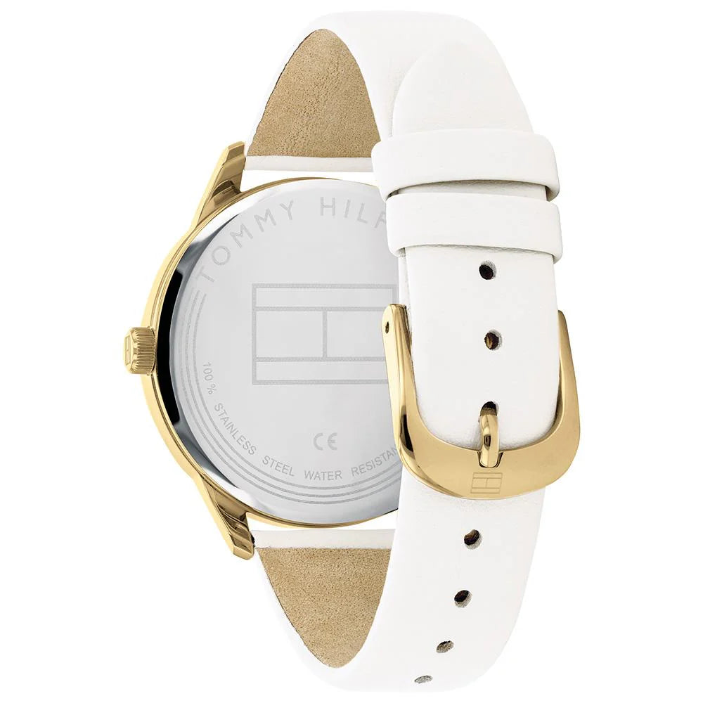 Diseño limpio y sofisticado pensado para lo cotidiano: este modelo Brooklyn de Tommy Hilfiger presenta una esfera plateada y pulida en una caja redonda de acero inoxidable chapado en oro (≈ 38 mm), combinada con una correa de piel blanca genuina de 17 mm con hebilla. Ofrece lectura clara con indicador de fecha y visualización de 24 h, impulsado por movimiento de cuarzo confiable. Con apenas 8 mm de grosor y resistencia al agua de 30 m (3 bar), resulta una opción ligera, elegante y funcional para el día a día. Incluye 2 años de garantía oficial.