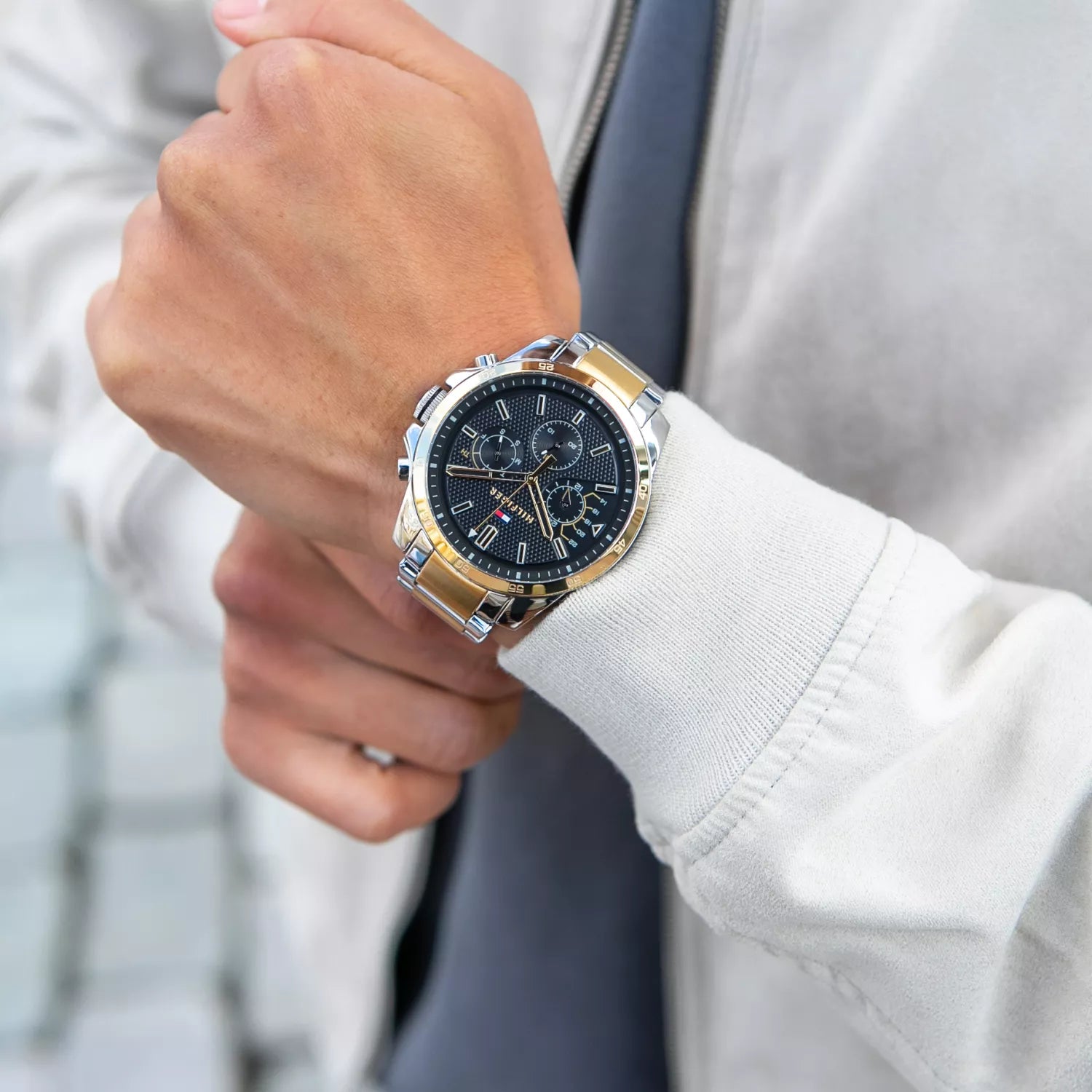 Déjate cautivar por el **Tommy Hilfiger Decker 1791559**, un reloj masculino que combina la elegancia clásica con un aire deportivo moderno. Su esfera negra profunda contrasta con la caja y pulsera de acero inoxidable en acabado bicolor (oro y acero), reflejando una sofisticación versátil. Los subdiales multifunción —día, fecha y 24 h—, junto a marcadores e índices luminosos, te ofrecen máxima funcionalidad con estilo. Ideal para el hombre contemporáneo que busca una pieza que funcione tanto en la oficina como en el ocio urbano, irradiando confianza y carácter. Incluye 2 años de garantía oficial.