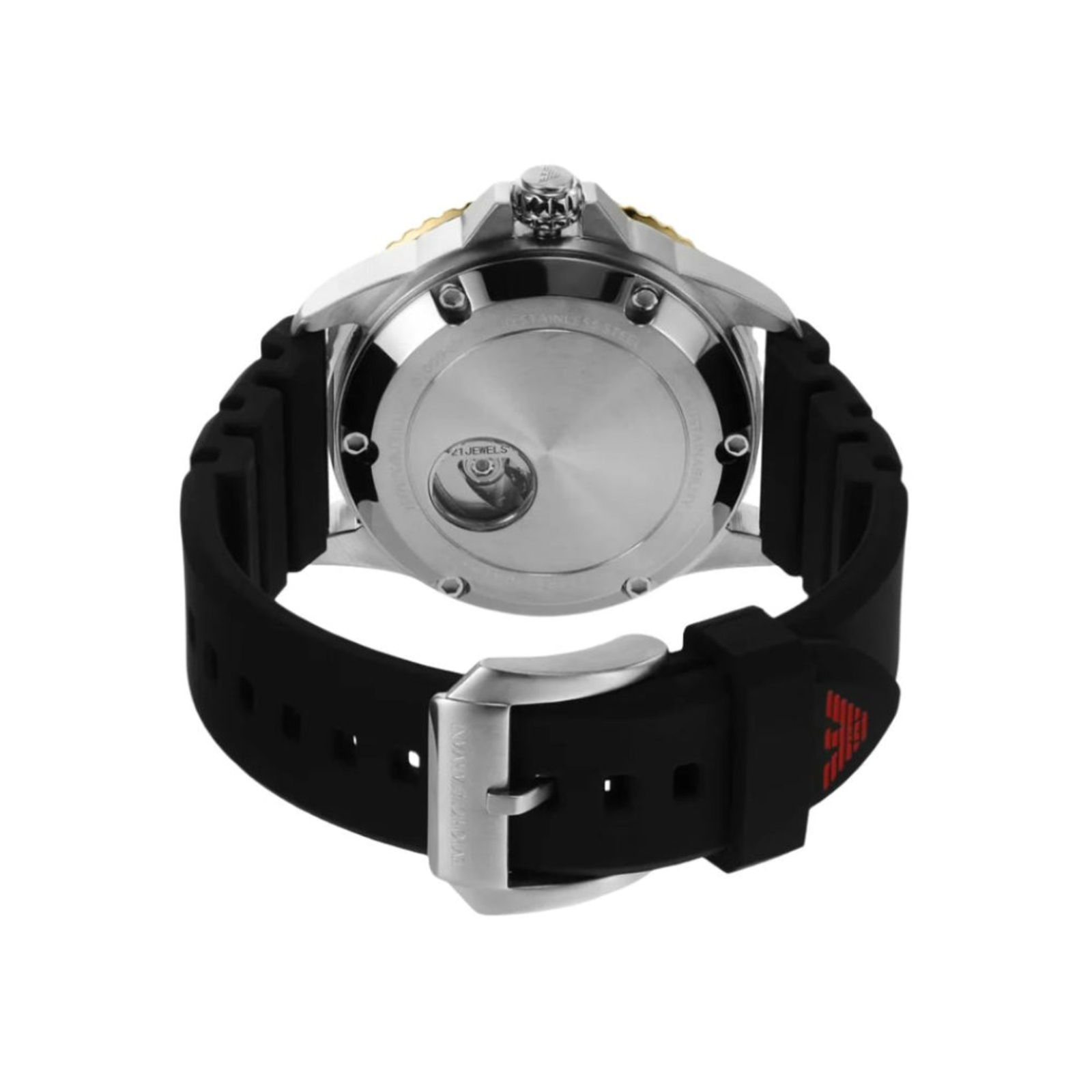 El Emporio Armani Meccanico AR60070 es un reloj de imponente presencia, diseñado para quienes definen su estilo con carácter. Su esfera de 42 mm presenta un degradado sunray de rojo a negro que cautiva a primera vista, mientras la correa de silicona negra ofrece un soporte cómodo y moderno. Su movimiento automático y resistencia hasta 100 m revelan su versatilidad diaria sin renunciar a un aire deportivo refinado. Incluye 2 años de garantía oficial.
