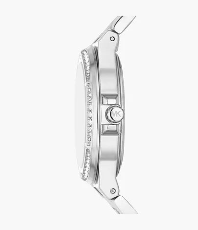 El Reloj Michael Kors Lennox MK7234 es pura sofisticación con su esfera plateada totalmente pavé y logo facetado que captura la luz en cada ángulo. El bisel roscado con pavé brillante añade un efecto joya irresistible, mientras su diseño compacto (37 mm) proporciona un ajuste elegante para ocasiones especiales o looks sofisticados. Perfecto para quien busca glamour sin perder funcionalidad. Incluye 2 años de garantía oficial.